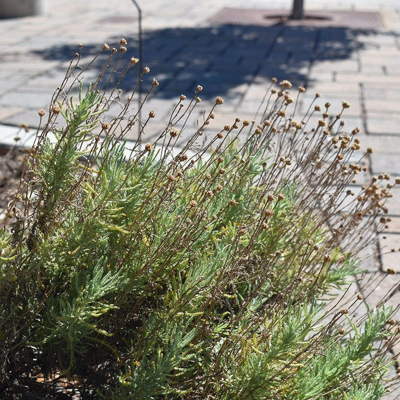 This wonderful Old World herb, native to the Mediterranean region of Europe, has aromatic foliage and deep yellow flowers. With evergreen foliage and eye-catching flowers, Gray Santolina (Santolina chamaecyparissus) is perfect for rock gardens, low-water gardens, xeriscapes, and lawn alternatives. If you have success with growing Lavender, your garden should be a good place to grow Santolina, which is also known as Lavender Cotton. Santolina was introduced in the US in the 1950s, and have since naturalized in some areas of California. It prefers sandy, rocky, lean soils, but is adaptable, and can also be planted in loam or clay, as long as it is well-drained, has plenty of sun, and lots of air circulation. Avoid planting in humid climates, or into unamended clay or rich garden loam. Water regularly to establish Santolina, but grow them on the dry side from the second growing season and beyond. It is fairly short-lived, about 3-5 years. Prune in the late winter or spring to prevent it from getting leggy or woody; it can be divided in spring or fall. Resinous foliage is completely deer and rabbit resistant, and highly resistant to pests – the foliage and flowers can also be used in sachets to keep away clothes moths. Other xeric companion plants that grow well with Santolina include Teucrium (Germander), Creeping Thyme (Thymus), and Rosemary (Rosmarinus).