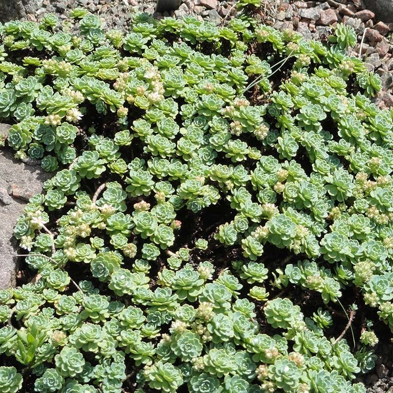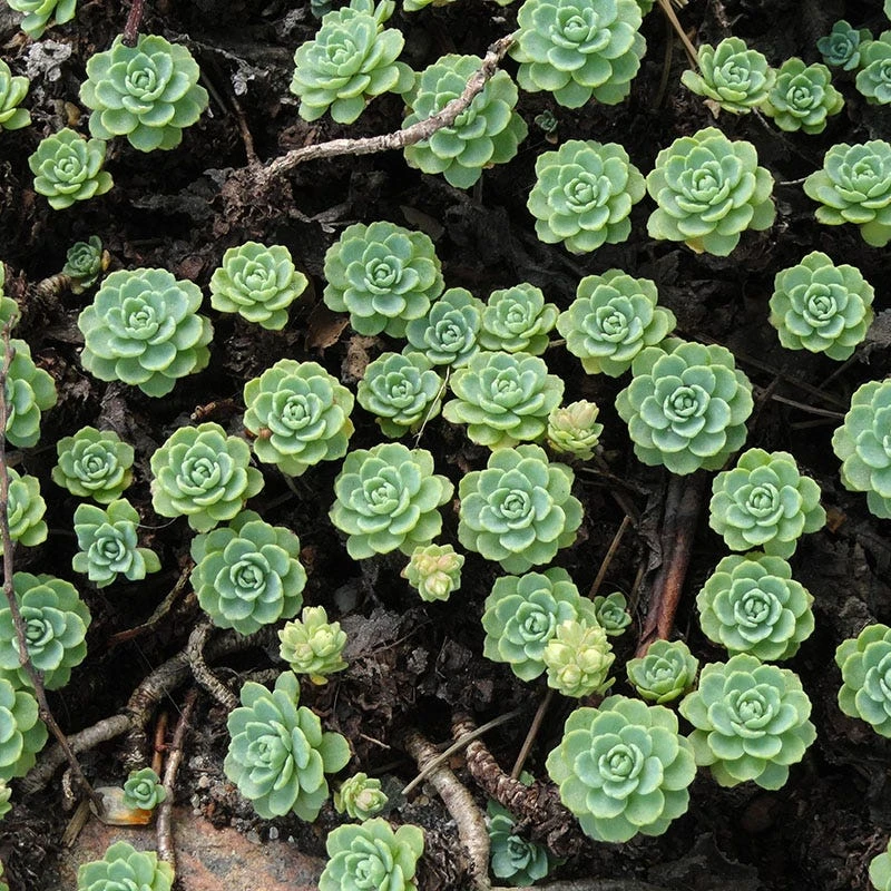 Sedum pachyclados (Gray Stonecrop) – also known as Rhodiola pachyclados, weaves a tight mat of blue-green succulent rosettes that cover ground beautifully. At 2-4″ tall it spreads to 8-12″ wide. Plant it in a full sun location with average/gritty soil with good drainage. Regular water will help seedlings establish deep roots and spread quickly. It’s a beautiful container plant as well and combines nicely with other succulents. Once established it can tolerate drought for several months. Native to Pakistan and Afghanistan, it spreads by thin rhizomes.